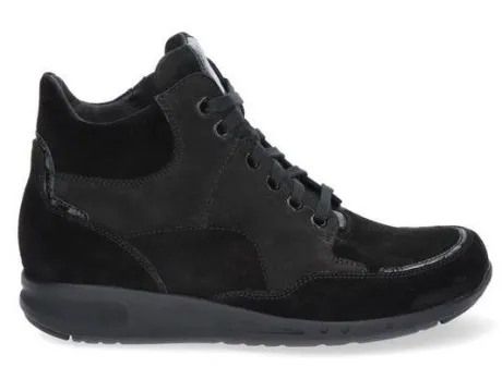 Boot van Durea op de Go leest in zwart nubuck met suede op een bijna platte sleehak. Aan de zijkant zit een rits waardoor die makkelijk is aan en uit te trekken. De innovatie van de Go zool zorgt voor een ideaal looppatroon en stimuleert daarmee een natuurlijke houding van het lichaam waarbij het lopen vergemakkelijkt wordt. De boots zijn lichter van gewicht, soepel met dragen en zorgen voor veel demping en stabiliteit. Uitermate geschikt bij een hallux valgus, hallux rigidus, hielspoor, peesplaatontsteking en reuma. Goed te verstellen met een veter, daarbij is de boot gemaakt op een gebroken wijdte dwz dat de boot in de hielpartij smaller is, waardoor die extra goed om de hiel sluit. De zool is van PU en de hak is 1,7 cm hoog. Gemaakt op een brede H wijdte op de leest 685. Uiteraard heeft de boot een stevig contrefort en een uitneembaar voetbed. ||Durea is een Nederlands fabricaat, met diverse leesten en wijdtematen. Het ontwerp en de afwerking geschiedt in Drunen. De productie vindt in het buitenland plaats, waar Durea fabrieken bezit, onder toezicht van eigen mensen. Iedere schoen ondergaat ca 200 handelingen, Daar Durea alles in eigen beheer heeft kunnen zij hun hoge kwaliteit waarborgen. Durea koopt u online bij Ruttenschoenen.nl