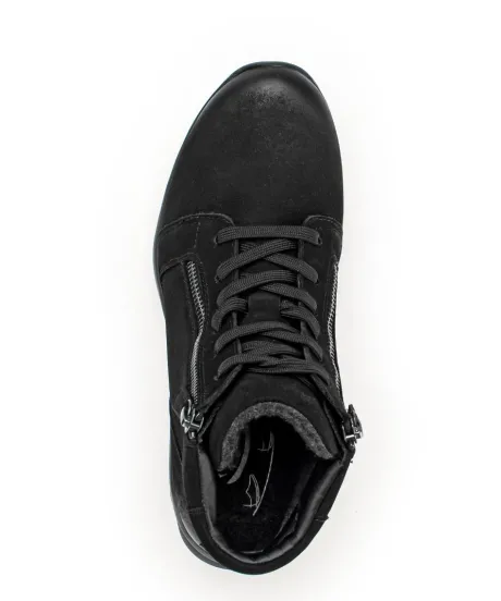 Boot van Gabor in blauw nubuck, gevoerd met wol op een wijdte G op de leest Rolling soft. Deze leest heeft een speciale zool waarbij het lopen vergemakkelijkt wordt. Aan 2 zijden zit een rits, waardoor makkelijk aan en uit te tekken. Het voetbed is uitneembaar, dus geschikt voor uw eigen steunzool. De boot heeft een hakhoogte van 20 mm. ||Gabor is een Duits fabricaat, met diverse leesten en wijdtematen. Ze staan bekend om hun goede leesten en zachte leersoorten. Modisch comfortabel tegen betaalbare prijzen. Sommige hebben een uitneembaar voetbed. Gabor koop je online bij Ruttenschoenen.