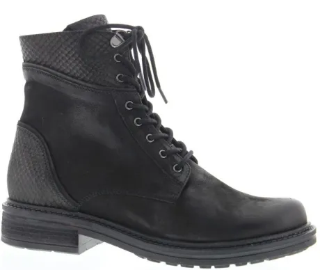Stoere bikerboot van Helioform in zwart gevet nubuck gecombineerd met een crocoprint bij de hiel en bovenaan de kap. Gemaakt op een brede H wijdte op de leest 660. De boot heeft een rits aan de binnenkant waardoor die makkelijk is aan en uit te trekken. De hak is laag ca 30 mm. De voetbedden zijn uitneembaar en de boot is dus geschikt voor uw eigen steunzool. ||Helioform is een Nederlands fabrikaat in een populaire prijsklasse, de schoenen worden in Nederland ontworpen en tegenwoordig onder streng toezicht van eigen mensen onder goede arbeidsomstandigheden in India gemaakt. Ze maken verschillende wijdtematen en meestal zijn ze geschikt voor eigen steunzool. De schoenen hebben een uitstekende prijs/ kwaliteit verhouding. Helioform koop je online bij Ruttenschoenen.nl