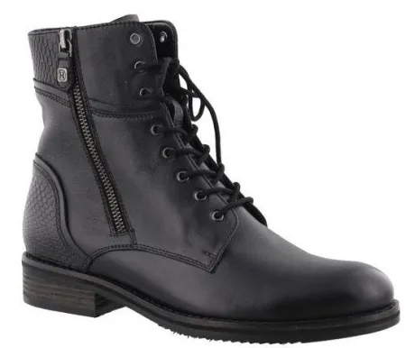 Bikerboot van Helioform die mede door de zool wat gekleder is. Gemaakt met 2 ritsen in zwart leer icm een print op een extra brede K wijdte op de leest 793. Door de ritsen zijn ze extra makkelijk uit en aan te trekken. De boot heeft een bijna platte hak. De voetbedden zijn uitneembaar en ze zijn dus geschikt voor eigen steunzool. ||Helioform is een Nederlands fabrikaat in een populaire prijsklasse, de schoenen worden in Nederland ontworpen en tegenwoordig onder streng toezicht voor goede arbeidsomstandigheden in India gemaakt. Ze maken verschillende wijdtematen en meestal zijn ze geschikt voor eigen steunzool.