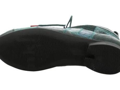 Deze boot van Think wordt steeds in nieuwe leuke combinaties gemaakt. Zoals deze in groen patchwork. De boot heeft een fijne pasvorm en een bijna platte hak. Gemaakt op de leest Guad 2. Think maakt niet echt wijdtematen, maar is vaak geschikt voor een vollere voet. De voetbedden zijn uitneembaar, dus geschikt voor eigen steunzool. ||Think is een merk uit Oostenrijk en kenmerkt zich door aparte ontwerpen, met een prima pasvorm, gemaakt uit de beste leersoorten, die vaak plantaardig gelooid zijn.