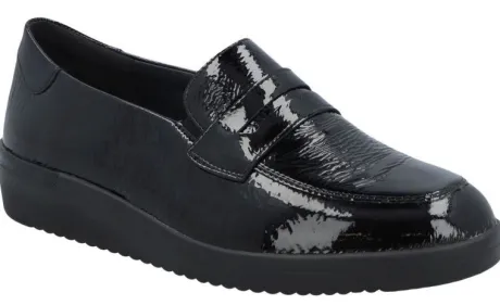 Loafer van Solidus op een extra brede K wijdte op de leest Kathy in zwart kreuklak. Aan de zijkant zit elastiek voor een betere pasvorm. De voetbedden zijn uitneembaar en de schoen is dus geschikt voor uw eigen steunzool. ||Solidus is een Duits fabricaat, met diverse leesten en wijdtematen, van smal tot super breed. Ze gebruiken zachte leersoorten, waardoor ze vaak zeer comfortabel en geschikt voor gevoelige voeten zijn. Voor de zeer gevoelige en of diabete voet, maken ze ook nog een speciale collectie “Solicare” Veel leesten en artikelen komen vaak weer terug, veelal in een andere uitvoering. Solidus koopt u online bij Ruttenschoenen.nl
