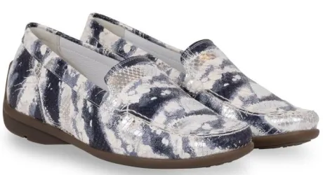 Instap schoen van Waldlaufer op een brede H wijdte in blauw met witte combinatie. De schoen is gemaakt op de originele mocassin maakwijze, waardoor die soepel met dragen is en een zachte neus heeft. Deze schoen heeft een uitneembaar voetbed en is daardoor geschikt voor uw eigen steunzool. ||Waldlaufer is een Duits merk. Kenmerkend is dat ze licht zijn van gewicht en zacht van leer. Ze maken verschillende wijdtematen en meestal zijn de voetbedden uitneembaar. Waldlaufer koop je online bij ruttenschoenen.nl