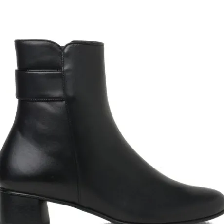 Korte laars van Hassia in zwart glad kalfsleer met een sierband bij de enkel. Gemaakt op een brede H wijdte op de leest Siena met een blokhak. Met een uitneembaar voetbed waardoor geschikt voor uw eigen steunzool. ||Hassia is een Duits fabrikaat, met diverse leesten en wijdtematen. Het zijn vaak wat luxere schoenen, vervaardigd uit mooie kalfsleersoorten. Het zijn vaak wat luxere schoenen, vervaardigd uit mooie kalfsleersoorten.