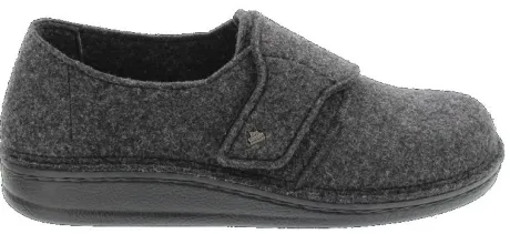 Klittenband pantoffel van FinnComfort in grijs wollen vilt. Op een brede leest, waarbij de voetbedden uitneembaar zijn. De pantoffel biedt bij de tenen extra veel ruimte. Met een platte stabiele hak. De zool is met een handgenaaide steek verbonden. ||FinnComfort is een Duits merk , wat nog steeds in Duitsland wordt gemaakt en vaak ook deels nog handwerk is, dat merk je en dat voel je. De optimale pasvorm verzekert een schokabsorberende en natuurlijke afwikkeling van de voet. De schoen biedt veel ruimte bij de tenen, zoals het eigenlijk hoort. Er zijn verschillende types en leesten, waar FinnComfort geen wijdte aan verbindt, welke wij proberen aan te geven met welke wijdte dit overeenkomt. Finn Comfort koopt u online bij Ruttenschoenen.nl
