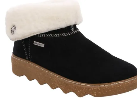 Dames hoog op de voet gesloten pantoffel van Rohde in zwart suede met een uitneembaar voetbed. De pantoffel is gevoerd met geschoren wol. Aan de bovenkant zit een bontrand. De hak is bijna plat ||Rohde is van oorsprong een Duitse firma en inmiddels overgenomen door een Italiaan. Rohde wordt hoofdzakelijk in de aziatische landen gefabriceerd. ||||||||||||Bestelnummer 410 50 0001