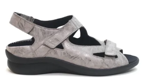 Sandaal van Durea in een taupe nubuck fantasieprint op een E wijdte leest 215. Deze sandaal is goed verstelbaar met drie klittebanden. De zool geeft een goede stabiliteit en demping met het lopen. De hakhoogte is 2 cm. en de zool is slijtvast. Het voetbed is uitneembaar, dus geschikt voor u eigen steunzool. |||||Durea is een Nederlands fabricaat, met diverse leesten en wijdtematen. Het ontwerp en de afwerking geschiedt in Drunen. De productie vindt in het buitenland plaats, waar Durea eigen fabrieken bezit, onder toezicht van eigen mensen. Iedere schoen ondergaat ca 200 handelingen, Daar Durea alles in eigen beheer heeft kunnen zij hun hoge kwaliteit waarborgen. Durea koop je online bij ruttenschoenen.nl