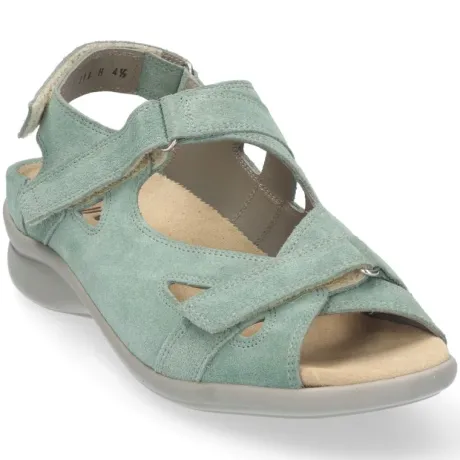 Sandaal van Durea in een mint groen suede op een smalle E wijdte op leest 215. Deze sandaal is goed verstelbaar met drie klittebanden. De zool geeft een goede stabiliteit en demping met het lopen. De hakhoogte is 2 cm. en de zool is slijtvast. Het voetbed is uitneembaar, dus geschikt voor u eigen steunzool. || Durea is een Nederlands fabricaat, met diverse leesten en wijdtematen. Het ontwerp en de afwerking geschiedt in Drunen. De productie vindt in het buitenland plaats, waar Durea eigen fabrieken bezit, onder toezicht van eigen mensen. Iedere schoen ondergaat ca 200 handelingen, Daar Durea alles in eigen beheer heeft kunnen zij hun hoge kwaliteit waarborgen. Durea koop je online bij ruttenschoenen.nl