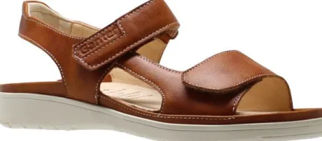 Sandaal van Ganter in cognac leer op een G wijdte op de leest Gina. Geschikt voor een gemiddelde tot brede voet. De sandaal is verstelbaar met 2 klittenbanden. De sandaal heeft een goed voetbed dat uitneembaar is en heeft een bijna platte hak. Is dus ook geschikt voor uw eigen steunzool. ||Ganter is een Duits fabricaat, met diverse leesten en wijdtematen. Zij hebben pasvorm, natuur en milieu hoog in het vaandel. Ze maken tijdloze schoenen en gebruiken daarbij materialen die zo min mogelijk het milieu belasten. Zoals plantaardig gelooid leer, kurken voetbedden tot aan papier uit duurzame bosbouw. Ganter koopt u online bij ruttenschoenen.nl