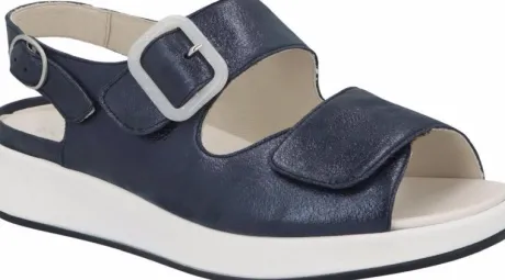 Sandaal van Solidus met 2 klittenbanden en van achter een drukknop die te verstellen is in blauw metallic suede. Gemaakt op een extra brede K wijdte op de leest Kami met een bijna platte hak van ca 25 mm hoog. De voetbedden zijn uitneembaar en ze zijn dus geschikt voor uw eigen steunzool. ||Solidus is een Duits fabricaat, met diverse leesten en wijdtematen, van smal tot super breed. Ze gebruiken zachte leersoorten, waardoor ze vaak zeer comfortabel en geschikt voor gevoelige voeten zijn. Voor de zeer gevoelige en of diabete voet, maken ze ook nog een speciale collectie “Solicare” Veel leesten en artikelen komen vaak weer terug, veelal in een andere uitvoering. Solidus koopt u online bij Ruttenschoenen.nl