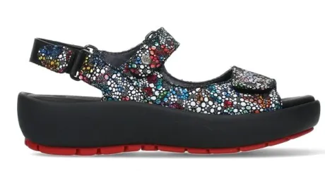 Sandaal van Wolky in een veel kleurige combinatie met een fantasieprint op suède basis, verstelbaar met 2 klittenbanden en een klittenband bij de hiel. Gemaakt op de leest Swing. De sandaal heeft een zeer comfortabele zool met een extra afwikkeling wat het lopen vergemakkelijkt. De voetbedden zijn uitneembaar en daardoor geschikt voor een steunzool. Wolky is een Nederlands merk, wat grotendeels in Portugal geproduceerd wordt. Kenmerkend zijn de zachte zolen waarop u verend loopt. Het lopen op wolken effect. Wolky koopt u online bij Ruttenschoenen.nl