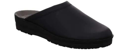 Slipper van Rohde met dichte teen in zwart leer op een G wijdte. Het zijn comfortabele slippers. De voetbedden zijn niet uitneembaar. ||Rohde is van oorsprong een Duitse firma en inmiddels overgenomen door een Italiaan. Rohde wordt hoofdzakelijk in de aziatische landen wordt gefabriceerd.