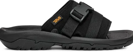Badslipper van Teva in zwart nijlon verstelbaar met een clip over de voorvoet. De slipper heeft een goed voetbed waar je lekker op kan lopen.