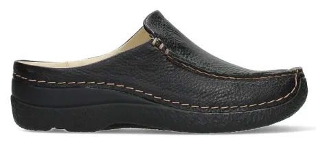 Slipper van Wolky in zwart leer met dichte teen op de leest Roll Moc. Bovenop de loopt een asymetrische naad. De voetbedden zijn uitneembaar en ze zijn dus geschikt voor eigen uw steunzool. Op de bekende Rollzool die zeer comfortabel loopt. ||Wolky is een nederlands merk, wat grotendeels in Portugal geproduceerd wordt. Kenmerkend zijn de zachte zolen waarop u verend loopt. Met name deze zolen zijn super comfortabel. Het lopen op wolken effect. Wolky koopt u online bij Ruttenschoenen.nl ||Dit artikel wordt regelmatig nabesteld, mocht uw maat ontbreken kunt u altijd co ntact met ons opnemen en/of reserveren.