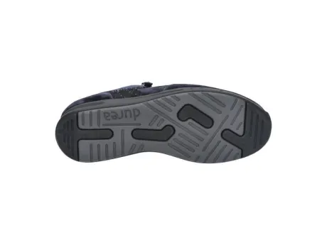 Veterschoen van Durea in een donker blauw suede met fijne prints in de Go groep op een brede H wijdte op de leest 685. Aan de zijkant zit een rits waardoor die makkelijk is aan en uit te trekken. De innovatie van de Go zool zorgt voor een ideaal looppatroon en stimuleert daarmee een natuurlijke houding van het lichaam, waarbij het lopen vergemakkelijkt wordt. De schoenen zijn lichter van gewicht, soepel met dragen en zorgen voor veel demping en stabiliteit. Uitermate geschikt bij een hallux valgus, hallux rigidus, hielspoor, peesplaatontsteking en reuma. Goed te verstellen met een veter, daarbij is de schoen gemaakt op een gebroken wijdte dwz dat de schoen in de hielpartij smaller is, waardoor die extra goed om de hiel sluit. De zool is van PU en de hak is 1,7 cm hoog. Uiteraard geschikt voor uw eigen steunzool. ||Durea is een Nederlands fabricaat, met diverse leesten en wijdtematen. Het ontwerp en de afwerking geschiedt in Drunen. De productie vindt in het buitenland plaats, waar Durea eigen fabrieken bezit, onder toezicht van eigen mensen. Iedere schoen ondergaat ca 200 handelingen, Daar Durea alles in eigen beheer heeft kunnen zij hun hoge kwaliteit waarborgen. Durea koop je online bij www.Ruttenschoenen.nl