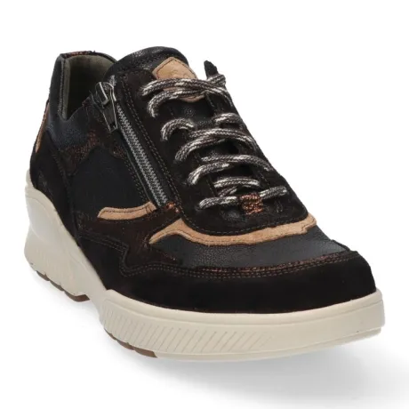 Sneaker van Durea op moderne nieuwe Go zool in zwart suede met leer gecombineerd met een croco inzet en een lichtgekleurde zool. Kenmerken van de innovatieve Go zool is dat die lichter van gewicht is en zorgt voor een ideaal looppatroon welke de natuurlijke houding van het lichaam stimuleert. Aan de zijkant zit een rits zodat als de veter eenmaal is ingesteld de schoen makkelijk aan en uit te trekken is. Tevens zorgt de zool voor veel demping. Gemaakt op een brede H wijdte op de leest 685. De hak is 1,7 cm hoog. De schoen heeft een uitneembaar voetbed en is geschikt voor uw eigen steunzool. ||Durea is een Nederlands fabricaat, met diverse leesten en wijdtematen. Het ontwerp en de afwerking geschiedt in Drunen. De productie vindt in het buitenland plaats, waar Durea eigen fabrieken bezit, onder toezicht van eigen mensen. Iedere schoen ondergaat ca 200 handelingen, Daar Durea alles in eigen beheer heeft kunnen zij hun hoge kwaliteit waarborgen. Durea koopt u off en online bij Ruttenschoenen.nl