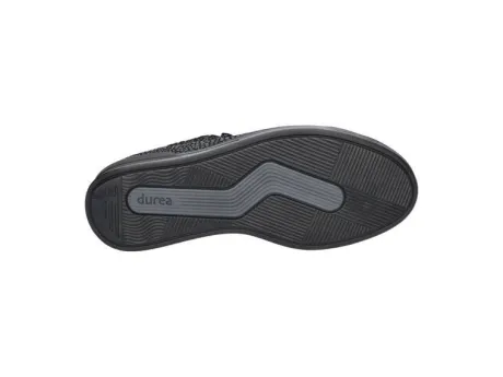 Sneaker van Durea op een brede H Wijdte op de leest 685 in zwart leer met een fantasieprint op nubuck basis aan de zijkant. Aan de zijkant zit een een rits daarbij is de schoen met een veter te verstellen. Hierdoor is de schoen makkelijk aan en uit te trekken. De schoen heeft een licht gewicht zool welke soepel, stabiel en is antislip is. De hakhoogte is 17 mm en de schoen heeft een uitneembaar voetbed en is dus geschikt voor u eigen steunzool. ||Durea is een Nederlands fabricaat, met diverse leesten en wijdtematen. Alle leesten van Durea zijn zgn gebroken leesten, dat wil zeggen de hielpartij is altijd een smallere leest is dan de voorvoet. Het ontwerp en de afwerking geschiedt in Drunen. De productie vindt in het buitenland plaats, waar Durea fabrieken bezit, onder toezicht van eigen mensen. Iedere schoen ondergaat ca 200 handelingen, Daar Durea alles in eigen beheer heeft kunnen zij hun hoge kwaliteit waarborgen. Durea schoenen koopt u bij Ruttenschoenen.nl