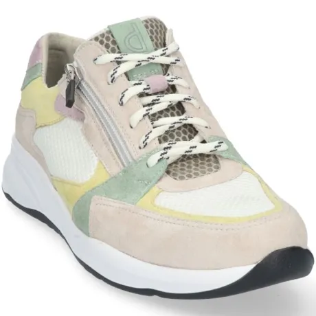 Veterschoenen<Durea – Wijdte H – Beige met Pastel – 6295 – Uitneembaar Voetbed