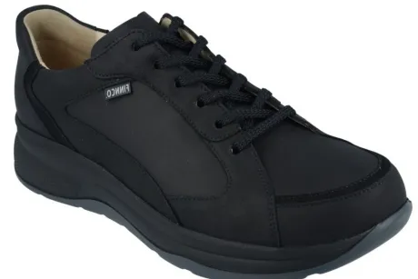 Sportieve sneaker van Finncomfort met een stabiele zool die extra makkelijk afwikkelt. In zwart nubuck gemaakt op een brede leest ca wijdte H. FinnComfort werkt niet met wijdtes vandaar dat we die ongeveer inschatten. De voetbedden zijn uitneembaar en de schoen geeft extra ruimte bij de tenen. ||FinnComfort is een Duits merk, wat nog steeds in Duitsland wordt gemaakt en vaak ook deels nog handwerk is, dat merk je en dat voel je. De optimale pasvorm verzekert een schokabsorberende en natuurlijke afwikkeling van de voet. De schoen biedt veel ruimte bij de tenen, zoals het eigenlijk hoort. Veel schoenen hebben 2 verwisselbare voetbedden, waaronder een voetreflex massagevoetbed en een normaal kurken ondersteunend voetbed. Er zijn verschillende types en leesten, waar FinnComfort geen wijdte aan verbindt, welke wij proberen aan te geven met welke wijdte dit overeenkomt.