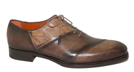 Geklede veterschoen van Harris in bruin leer gecombineerd met taupe, waarop teksten staan. De schoen is vervaardigd uit de mooiste kalfsleer soorten en ook de voering is van kalfsleer. Tel daarbij op de finesse wat de Italiaanse schoen industrie kenmerkt dan zie je de perfectie van de schoen. De schoen heeft een leren zool. ||Harris kenmerkt zich als een fabrikant van luxe apart gemaakte herenschoenen vaak in aparte leersoorten en prints. Ook de pasvorm is subliem en ze worden vaak in bijzondere maakwijzes gemaakt.