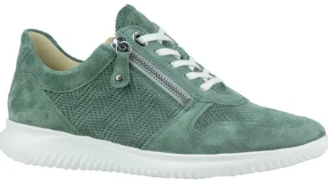 Sneakers van Hartjes in groen suede met een fantasieprint aan de zijkant en een zacht polsterrandje bij de enkel. Gemaakt op een G wijdte. Aan de zijkant zit een rits waardoor de schoen makkelijk is aan en uit te trekken. De schoen heeft een uitneembaar voetbed en is geschikt voor uw eigen steunzool. Een lage sleehak in een lichte kleur maakt de schoen compleet. Kenmerkend is het lichte gewicht en het zachte gevoel met lopen. ||Hartjes is een Oostenrijks merk wat al sinds 1953 comfortabel schoeisel produceert met de hoogste kwaliteit en een rijke traditie van Oostenrijks schoenmakershandwerk. Het is een echt groen merk en produceren uitsluitend milieu vriendelijk in het hart van europa, met goede vakmensen, die onder goede omstandigheden werken. Innovatief , zoals het geïntegreerde , uitneembare lichtgewicht kurkvoetbed, natuurlijke voeringmaterialen als lamvel en walkloden (100% zuiver scheerwol), de plantaardig gelooide leersoorten. Hartjes verwerkt alleen hoogwaardige leersoorten. Ze beschermen de voet door haar robuustheid, de binnenzijde voelt zijdezacht aan en door haar natuurlijke, nerfstructuur maakt het iedere schoen uniek. Hartjes koopt u online bij Ruttenschoenen.nl