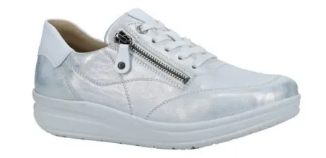 Deze sneakers van Hartjes zijn speciaal gemaakt voor super brede gevoelige voeten. Uitermate geschikt voor de diabetische en of reumatische voet, waarbij een extra afwikkeling in de zool is. Gemaakt in zilver leer. Bij de enkel zit een polster rand. Gemaakt op een super brede M wijdte met extra teenruimte. Aan de zijkant zit een rits, waardoor als de veter eenmaal is ingesteld, de schoen makkelijk is aan en uit te trekken. De schoen heeft een uitneembaar voetbed en is geschikt voor uw eigen steunzool. Een lage sleehak in een lichte kleur maakt de schoen compleet. De schoen is vervaardigd uit zacht plantaardig gelooid leer. Kenmerkend is het lichte gewicht en het zachte gevoel met lopen. ||Hartjes is een Oostenrijks merk wat al sinds 1953 comfortabel schoeisel produceert met de hoogste kwaliteit en een rijke traditie van Oostenrijks schoenmakershandwerk. Het is een echt groen merk en produceren uitsluitend milieu vriendelijk in het hart van europa, met goede vakmensen, die onder goede omstandigheden werken. Innovatief , zoals het geintegreerde , uitneembare lichtgewicht kurkvoetbed, natuurlijke voeringmaterialen als lamvel en walkloden (100% zuiver scheerwol), de plantaardig gelooide leersoorten. Hartjes verwerkt alleen hoogwaardige leersoorten. Ze beschermen de voet door haar robuustheid, de binnenzijde voelt zijdezacht aan en door haar natuurlijke, nerfstructuur maakt het iedere schoen uniek. Hartjes koopt u online bij Ruttenschoenen.nl