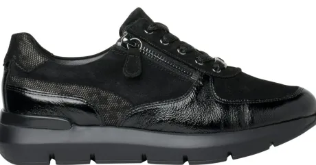 Sneaker van Hassia in zwart suede met lak en extra ruimte bij de knok. Gemaakt op een brede H wijdte op de leest Bordeaux. De schoen heeft een rits aan de zijkant waardoor die makkelijk is aan en uit te trekken. Het voetbed is uitneembaar en daardoor geschikt voor een eigen steunzool. ||Hassia is een Duits fabrikaat, met diverse leesten en wijdtematen. Het zijn vaak wat luxere schoenen, vervaardigd uit mooie kalfsleersoorten. Hassia koopt u online en offline bij Ruttenschoenen.nl