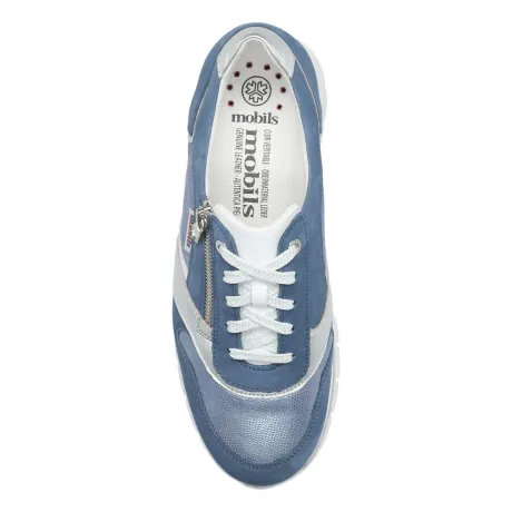 Sneaker van Mephisto Mobil in een blauw met wit combinatie nubuck. De Mobils van Mephisto hebben een bredere leest ca H wijdte. Aan de buitenkant zit een rits waardoor als de veter eenmaal goed is ingesteld de schoen makkelijk is aan en uit te trekken. De schoen voelt lekker zacht aan. De sleehak is iets hoger en de zool heeft een profiel en is comfortabel met lopen. De schoen heeft een uitneembaar voetbed en is daardoor geschikt voor uw eigen steunzool. ||Mephisto is een Frans fabrikaat en heeft diverse fabrieken. Mephisto kenmerkt zich als een comfortabele schoen die meestal niet uitgelopen hoeft te worden, ook de zool is zacht en verend. Een echte schoen voor kilometers loopplezier. meestal niet uitgelopen hoeft te worden, ook de zool is zacht en verend. Een echte schoen voor kilometers loopplezier. Mephisto Koopt u online bij Ruttenschoenen.nl