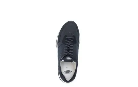 Rolling soft sneaker van Pius (de heren versie van Gabor). In blauw suede met nubuck combinatie en een witte zool. Aan de zijkant zit een rits, waardoor die makkelijk is aan en uit te trekken. De Rolling soft is een techniek in de zool waarop die lekker afwikkelt en het lopen vergemakkelijkt wordt. Gemaakt op een ruime G 1/2 wijdte en met een uitneembaar voetbed. ||Pius is de heren versie van Gabor en worden gekenmerkt door een lichter gewicht en zachte leersoorten. De Rolling soft maakt het lopen en afwikkelen makkelijk.