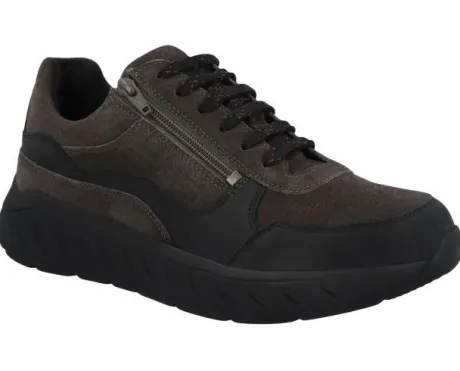 Sneaker van Solidus in zwart leer met grijs suede. Geschikt voor extra brede voeten op een K wijdte op de leest Ken. Aan de zijkant zit een rits, waardoor die makkelijk is aan en uit te trekken. De chunky zool geeft een jonge look. De voetbedden zijn uitneembaar en de schoenen zijn dus geschikt voor uw eigen steunzool. ||Solidus is een Duits fabricaat, met diverse leesten en wijdtematen, tot super breed. Ze gebruiken zachte leersoorten, waardoor ze vaak zeer comfortabel en geschikt voor gevoelige voeten zijn. De schoenen zijn ook vaak lichter van gewicht. Veel leesten en artikelen komen vaak weer terug, veelal in een andere uitvoering. Solidus koopt u off en online bij Ruttenschoenen.nl