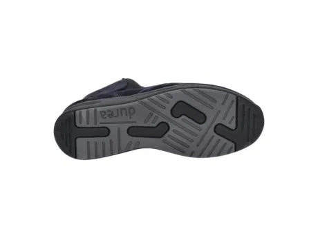 Boot van Durea op de Go zool in blauw suede in combinatie met een fijne print op een bijna platte sleehak. Aan de zijkant zit een rits waardoor die makkelijk is aan en uit te trekken. De innovatie van de Go zool zorgt voor een ideaal looppatroon en stimuleert daarmee een natuurlijke houding van het lichaam waarbij het lopen vergemakkelijkt wordt. De boots zijn lichter van gewicht, soepel met dragen en zorgen voor veel demping en stabiliteit. Uitermate geschikt bij een hallux valgus, hallux rigidus, hielspoor, peesplaatontsteking en reuma. Goed te verstellen met een veter, daarbij is de boot gemaakt op een gebroken wijdte dwz dat de boot in de hielpartij smaller is, waardoor die extra goed om de hiel sluit. De zool is van PU en de hak is 1,7 cm hoog. Gemaakt op een smalle E wijdte op de leest 682. Uiteraard heeft de boot een stevig contrefort en een uitneembaar voetbed. ||Durea is een Nederlands fabricaat, met diverse leesten en wijdtematen. Het ontwerp en de afwerking geschiedt in Drunen. De productie vindt in het buitenland plaats, waar Durea fabrieken bezit, onder toezicht van eigen mensen. Iedere schoen ondergaat ca 200 handelingen, Daar Durea alles in eigen beheer heeft kunnen zij hun hoge kwaliteit waarborgen. Durea koopt u online bij Ruttenschoenen.nl