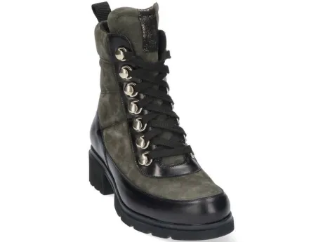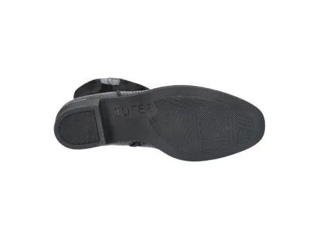 Sportieve boot van Durea in zwart leer met groen suede op een brede H wijdte op de leest 908 met de zool Neeltje. De boot heeft een lage blokhak van 30 mm met een zool van EVA. Daardoor is die licht van gewicht, flexibel en extra dempend en daarnaast ook stabiel en antislip. De voetbedden zijn uitneembaar dus ook geschikt voor eigen steunzool. ||Durea is een Nederlands fabricaat, met diverse leesten en wijdtematen. Het ontwerp en de afwerking geschiedt in Drunen. De productie vindt in het buitenland plaats, waar Durea fabrieken bezit, onder toezicht van eigen mensen. Iedere schoen ondergaat ca 200 handelingen, Daar Durea alles in eigen beheer heeft kunnen zij hun hoge kwaliteit waarborgen. Durea koopt u online bij Ruttenschoenen.nl