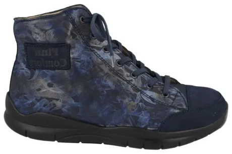 Een sneakerboot uit de Finnamic groep van Finncomfort in het blauw nubuck met een blauwe fantasieprint. Finnamic staat voor een speciale rolzool, waarbij het lopen wordt vergemakkelijkt en het lichaam rechter op gaat staan. Leverbaar in een brede ca H wijdte, met bij de tenen extra ruimte. De zool is uitneembaar dus geschikt voor uw eigen zool. ||FinnComfort is een Duits merk , wat nog steeds in Duitsland wordt gemaakt en vaak ook deels nog handwerk is, dat merk je en dat voel je. De optimale pasvorm verzekert een schokabsorberende en natuurlijke afwikkeling van de voet. De schoen biedt veel ruimte bij de tenen, zoals het eigenlijk hoort. Veel schoenen hebben 2 verwisselbare voetbedden, waaronder een voetreflex massagevoetbed en een normaal kurken ondersteunend voetbed. Er zijn verschillende types en leesten, waar FinnComfort geen wijdte aan verbindt, welke wij proberen aan te geven met welke wijdte dit overeenkomt. FinnComfort koopt u off en online bij Ruttenschoenen.nl