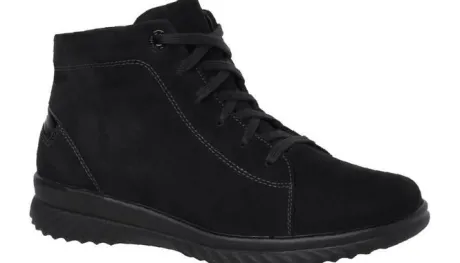 Boot van Ganter in zwart suede op een brede H wijdte op de leest Heike met extra ruimte bij de tenen. Aan de zijkant zit een rits waardoor die makkelijk is aan en uit te trekken. De pu zool geeft bij het lopen energie. De boot heeft een uitneembaar voetbed en is geschikt voor uw eigen steunzool. ||Ganter is een Duits fabrikaat, met diverse leesten en wijdtematen. Zij hebben natuur en milieu hoog in het vaandel. Ze maken tijdloze schoenen en gebruiken daarbij materialen die zo min mogelijk het milieu belasten. Zoals plantaardig gelooid leer, kurken voetbedden, tot aan papier uit duurzame bosbouw