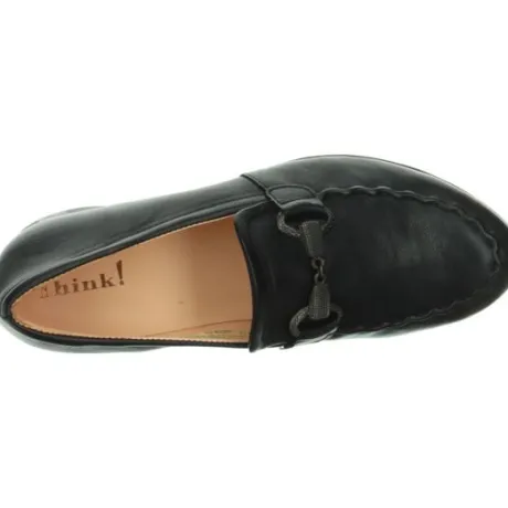 Instapper van Think in zwart zacht leer die hoger op de voet sluit met een sier bit over de wreef. De schoen is bij de hiel extra ingenomen waardoor die beter sluit. De schoen heeft een stevig contrefort. Gemaakt op de leest Guad 2. De zolen zijn uitneembaar waardoor de schoen geschikt is voor een eigen steunzool. ||Think is een merk wat uit Oostenrijk komt en bekend staat om hun eigenzinnige collectie vervaardigd uit mooie en aparte materialen. De meeste voetbedden zijn uitneembaar. Het leer wordt plantaardig gelooid. Think maakt geen wijdte maten, maar de schoenen worden vaak op een bredere leest gemaakt.