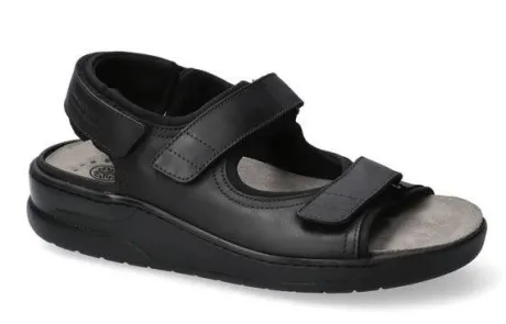 Sandalen van Mephisto verstelbaar met 3 klittenbanden in zwart leer. De sandaal heeft een Een heerlijk comfortabel en verend voetbed. De voetbedden zijn uitneembaar zodat ze vervangen kan worden voor uw eigen steunzool. ||Mephisto is een Frans merk die hoofdzakelijk in Frankrijk en Portugal worden gemaakt. Het zijn zeer comfortabele schoenen, gemaakt uit hoogwaardige leersoorten en materialen. Veelal met uitneembare voetbedden. Een deel van de collectie zit al jaren in de collectie en vullen wij regelmatig aan. Maar elk seizoen zijn er ook nieuwe snitten en uitvoeringen. Schoenen voor vele kilometers loopplezier. Het wordt niet voor niets het loopwonder uit Frankrijk genoemd. Veelal met uitneembare voetbedden. ||Een deel van de collectie zit al jaren in de voorraad en vullen wij regelmatig aan. Maar elk seizoen zijn er ook nieuwe snitten en uitvoeringen. ||Schoenen voor vele kilometers loopplezier. het wordt niet voor niets het loopwonder uit Frankrijk genoemd.