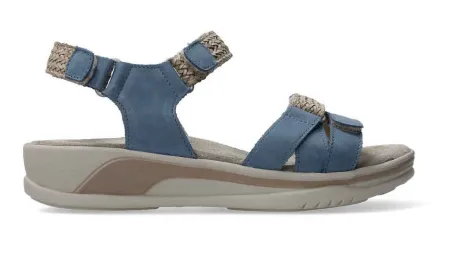 Een sandaal van Wolky in het jeansblauw met touw gecombineerd met een vast voetbed. Deze is zowel op de wreef en de voorvoet en de hiel verstelbaar met klittenband. Een licht gewicht zool met goede demping en een hakhoogte van ongeveer 1.5 cm zorgt voor een fijne afwikkeling. ||Wolky is een Nederlands merk, wat grotendeels in Portugal geproduceerd wordt. Ze hebben vaak een wat bredere leest en bieden ook vaak goed ruimte bij de tenen. Kenmerkend zijn de zachte zolen waarop u verend loopt. Het lopen op wolken effect. Wolky wordt dan ook vaak als zeer comfortabel ervaren. Ze hebben vaak een wat bredere leest en bieden ook vaak goed ruimte bij de tenen.