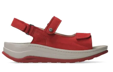 Sandaal van Wolky in rood nubuck met een lichtgekleurde zool op de leest Spine. De sandaal is verstelbaar met 3 klittenbanden. De sandaal heeft een soepele makkelijk afwikkelende zool die het lopen vergemakkelijkt. De voetbedden zijn uitneembaar en daardoor geschikt voor een steunzool. ||Wolky is een nederlands merk, wat grotendeels in Portugal geproduceerd wordt. Kenmerkend zijn de zachte zolen waarop u verend loopt. Het lopen op wolken effect. Wolky koopt u online bij Ruttenschoenen.nl Deze sandaal wordt regelmatig aangevuld. Als uw maat er niet meer bij staat kunt u altijd met ons contact opnemen of en wanneer die weer binnen komt.