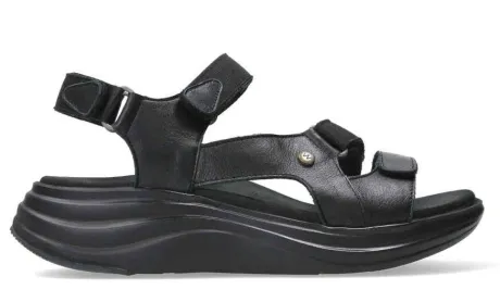 Wandel sandaal van Wolky met een bijna platte hak in zwart leer. De sandaal is gemaakt op de leest sky en is aan alle kanten met klittenband te verstellen. De sandaal heeft een niet uitneembaar voetbed wat lekker zacht loopt maar de voet ook goed ondersteunt. ||Wolky is een Nederlands merk, wat grotendeels in Portugal geproduceerd wordt. Kenmerkend zijn de zachte zolen waarop u verend loopt. Het lopen op wolken effect. Wolky koopt u online bij Ruttenschoenen.nl