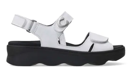 Sandaal van Wolky met een verstelbare klitteband op de voorvoet, over de wreef en bij de hiel.Gemaakt op de leest Future. De sandaal heeft een bijna platte hak en is uitgevoerd in wit leer. De sandaal heeft een aparte golvende zool en is gemaakt op de leest Future. De voetbedden zijn uitneembaar. ||Wolky is een Nederlands merk, wat grotendeels in Portugal geproduceerd wordt. Kenmerkend zijn de zachte zolen waarop u verend loopt. Het lopen op wolken effect. Wolky koopt u online bij Ruttenschoenen.nl