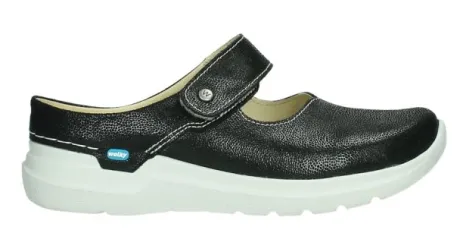 Slipper van Wolky op een brede ronde leest in zwart leer met een fijne fantasieprint. De slipper is verstelbaar met een klittenband en geschikt voor een vollere voet. Deze slipper is ontwikkeld op een nieuwe leest met een comfortabele zool,geschikt voor uw eigen steunzool. Op de leest Wally met een platte hak. In het midden bovenop zit een siernaad, maar bij de tenen is die geheel glad. ||Wolky is een Nederlands merk, wat grotendeels in Portugal geproduceerd wordt. Ze hebben vaak een wat bredere leest en bieden ook vaak goed ruimte bij de tenen. Kenmerkend zijn de zachte zolen waarop u verend loopt. Het lopen op wolken effect. Wolky wordt dan ook vaak als zeer comfortabel ervaren. Wolky koopt u online bij Ruttenschoenen.nl
