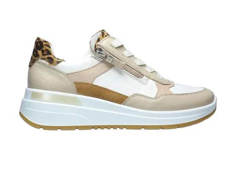 Sneaker van Ara in wit met beige leer met een panterprint bij de hiel. Aan de zijkant zit een rits waardoor die makkelijk is aan en uit te trekken. De zool wikkelt extra makkelijk af en de hak is bijna plat. Gemaakt op een brede H wijdte op de leest Garda. Het voetbed is uitneembaar, dus de schoen is geschikt voor uw eigen steunzool. ||Ara is een Duits merk, die in vele landen zelf produceren. De schoenen zijn vaak zacht en licht van gewicht. Ze maken diverse wijdtes en leesten. De Duitse leest is vaak prima voor de Nederlandse voet. Sommige hebben een uitneembaar voetbed. Ara koopt u online bij Ruttenschoenen.nl