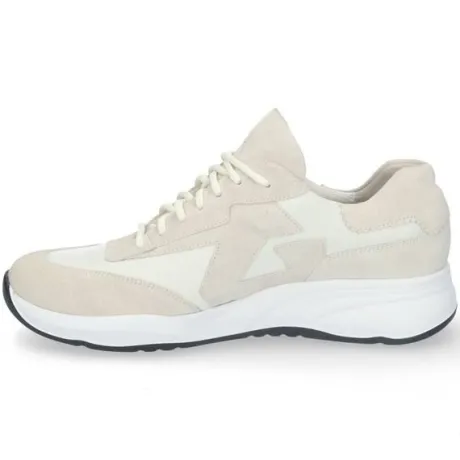 Lichtgewicht sneaker van Durea met een rechte teenligging waardoor er meer ruimte in de breedte voor de tenen is. De schoen is gemaakt offwhite suede met leer en een Drymex voering. Mede daardoor is die lichter van gewicht en luchtiger met dragen. Drymax kan ook goed vocht opnemen. Uitermate geschikt om er een stukje op te wandelen. Gemaakt op een extra brede K wijdte op de leest 608 met de zool Fleur. Deze is licht van gewicht, stabiel, dempend, antislip en flexibel. De voetbedden zijn uitneembaar. ||Durea is een Nederlands fabricaat, met diverse leesten en wijdtematen. Het ontwerp en de afwerking geschiedt in Drunen. De productie vindt in het buitenland plaats, waar Durea eigen fabrieken bezit, onder toezicht van eigen mensen. Iedere schoen ondergaat ca 200 handelingen, Daar Durea alles in eigen beheer heeft kunnen zij hun hoge kwaliteit waarborgen.