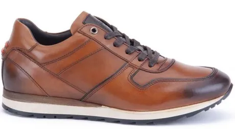 Sneaker van Greve in cognac kalfsleer wat uitgepoetst is en daardoor een mooi vlam effect heeft. Gemaakt op een brede H wijdte op de leest Fury met arne dry voering welke goed vocht op moet nemen. De voetbedden zijn uitneembaar. Bij de hiel is de schoen gepolsterd. De schoen is geschikt voor uw eigen steunzool. ||Greve is een Nederlandse fabriek, in 1898 begon Hermanus Greve met een schoenmakerij als doel Nederlands meest stijlvolle en superieure schoenen maken. De filosofie design, comfort en vakmanschap is nog steeds het uitgangspunt.