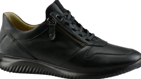 Sneakers van Hartjes in zwart leer op een G½ wijdte en een polsterrandje bij de enkel. Aan de zijkant zit een rits waardoor die makkelijk is aan en uit te trekken. De schoen heeft een uitneembaar voetbed en is geschikt voor uw eigen steunzool. Een lage sleehak maakt de schoen compleet. De schoen is vervaardigd uit zacht plantaardig gelooid leer. Kenmerkend is het lichte gewicht en het zachte gevoel met lopen. ||Hartjes is een Oostenrijks merk wat al sinds 1953 comfortabel schoeisel produceert met de hoogste kwaliteit en een rijke traditie van Oostenrijks schoenmakershandwerk. Het is een echt groen merk en produceren uitsluitend milieu vriendelijk in het hart van europa, met goede vakmensen, die onder goede omstandigheden werken. Innovatief , zoals het geïntegreerde , uitneembare lichtgewicht kurkvoetbed, natuurlijke voeringmaterialen als lamvel en walkloden (100% zuiver scheerwol), de plantaardig gelooide leersoorten. Hartjes verwerkt alleen hoogwaardige leersoorten. Ze beschermen de voet door haar robuustheid, de binnenzijde voelt zijdezacht aan en door haar natuurlijke, nerfstructuur maakt het iedere schoen uniek. Hartjes koopt u online bij Ruttenschoenen.nl