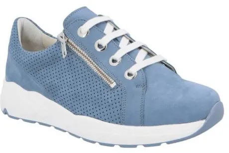 Sneaker van Solidus met veter te verstellen in jeans nubuck op een super brede M wijdte op de leest Mia. Aan de zijkant zit een rits waardoor als de veter eenmaal gesteld is de schoen makkelijk aan en uit te trekken is. De sneaker heeft een moderne chunky zool. De voetbedden zijn uitneembaar waardoor de schoen geschikt is voor uw eigen steunzool. ||Solidus is een Duits fabricaat, met diverse leesten en wijdtematen, van smal tot super breed. Ze gebruiken zachte leersoorten, waardoor ze vaak zeer comfortabel en geschikt voor gevoelige voeten zijn. Voor de zeer gevoelige en of diabete voet, maken ze ook nog een speciale collectie “Solicare” Veel leesten en artikelen komen vaak weer terug, veelal in een andere uitvoering. Solidus koopt u online bij Ruttenschoenen.nl