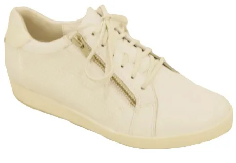 Sneaker van Verhulst in wit leer in combinatie met een fantasieprint bij de hiel. Aan de zijkant zit een rits waardoor die makkelijk is aan en uit te trekken. Gemaakt op een brede H wijdte op de leest Rosa. De schoen heeft een bijna platte sleehakmet een lichtgekleurde zool. De voetbedden zijn uitneembaar en de schoen is dus geschikt voor uw eigen steunzool. ||Verhulst is een Nederlands merk wat in Nederland ontwikkeld wordt. Ze maken hoogwaardige schoenen met veel comfort op verschillende wijdtematen.