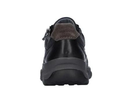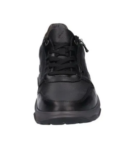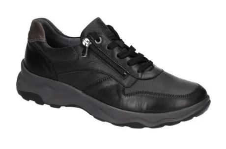 Sneaker van Waldlaufer geschikt voor brede voeten op een brede H wijdte in zwart leer. De schoen heeft een rits aan de zijkant, zodat die makkelijk is aan en uit te trekken. Bij de hiel heeft de schoen een polsterrand. De voetbedden zijn uitneembaar en daardoor is de schoen geschikt voor uw eigen steunzool. ||Waldlaufer is een Duits merk. Kenmerkend is dat ze licht zijn van gewicht en zacht van leer. Er zijn verschillende wijdtematen en meestal zijn de voetbedden uitneembaar. Waldlaufer koopt u online bij Ruttenschoenen.nl