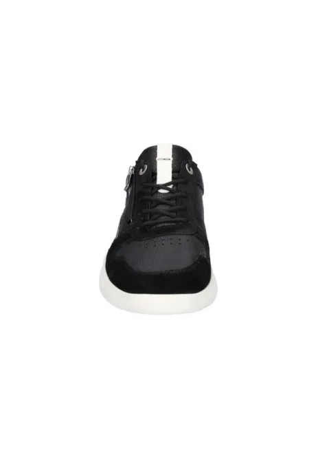 Sneaker van Waldlaufer geschikt voor een brede voet op een H wijdte op de leest Heiko in zwart met wit leer. De schoen heeft een rits aan de zijkant en een witte zool. De voetbedden zijn uitneembaar en daardoor is de schoen geschikt voor uw eigen steunzool. ||Waldlaufer is een Duits merk. Kenmerkend is dat ze licht zijn van gewicht en zacht van leer. Er zijn verschillende wijdtematen en meestal zijn de voetbedden uitneembaar. Waldlaufer koopt u online bij Ruttenschoenen.nl