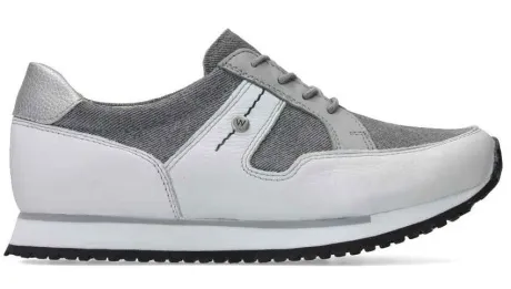 De E Walk is een dames veter schoen van Wolky met een speciale zool met een extra afwikkeling die het lopen vergemakkelijkt. Gemaakt in wit leer met een licht grijze jeansprint spiegel en zilvergrijze accenten. De schoen is verstelbaar met een veter en geschikt voor uw eigen steunzool. Op de leest E walk. De schoen heeft een bijna platte hak en een fijne profiel zool. ||Wolky is een Nederlands merk, wat grotendeels in Portugal geproduceerd wordt. Ze hebben vaak een wat bredere leest en bieden ook vaak goed ruimte bij de tenen. Kenmerkend zijn de zachte zolen waarop u verend loopt. Het lopen op wolken effect. Wolky wordt dan ook vaak als zeer comfortabel ervaren.
